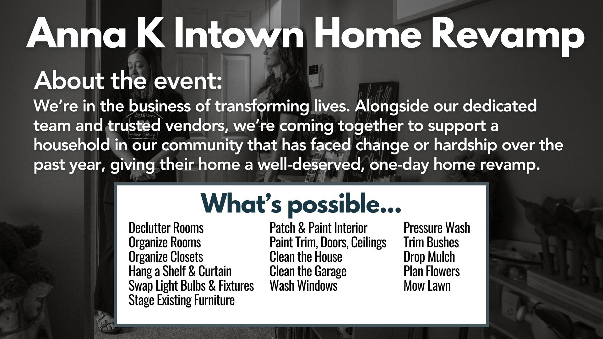 We’ve already started thinking about next year’s Home Revamp for another deserving person or family. If you wish to contribute in some way, please reach out today!